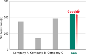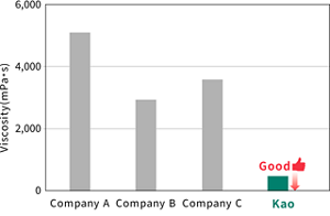 While current PFAS-free foams are valued for their environmental compatibility, they often face challenges in spreading, oil resistance, and viscosity compared to fluorine-based foams. Leveraging its advanced interface control technology, Kao has achieved high performance across these parameters—without PFAS.
