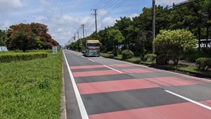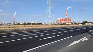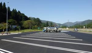 特に舗装の耐久性が必要とされる重工業工場(ヤマハ発動機株式会社)前の一般道での適用