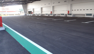 重荷重による耐わだち性能と白線の視認性が特に求められる物流センター内での適用